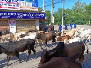 नेपालगञ्ज नगरमा दुर्घटनाको जोखिम बढेपछि छाडा छाडिएका ६४ वटा पशुचौपाया (गाईगोरु-५२ र घोडा-१२) वडा नम्बर २१ विर्तास्थित काञ्जीहाउसमा लगिएको छ । जिल्ला प्रहरी कार्यालयको सहयोगमा नगर प्रहरीले नगरका विभिन्न स्थानमा छाडा छाडिएका पशुचौपाया एकत्रित गरेर काञ्जीहाउस पुर्याएको हो । छाडा पशुचौपाया व्यवस्थापन कार्यमा सहयोगका लागि जिल्ला प्रहरी कार्यालय बाँकेलाई धन्यवाद । आ-आफ्ना पशुचौपाया घरमै बाँध्न आग्रह गर्दछौं । छाडा छाडिएको पाइएमा कडा कारबाही गरिनेछ ।उपमहानगरपालिका मेयर प्रशान्त विष्टले बताउनु